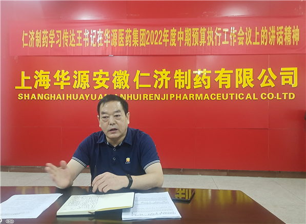 8月1日,上海华源安徽仁济制药有限公司在陈晓光总经理亲自安排下,组织召开专题会议,认真学习领会王书记在华源医药集团2022年度中期预算执行工作会议上的讲话精神,公司所有中层以上管理人员参加会议。