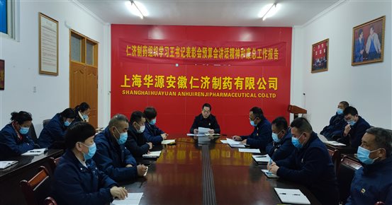 2023年2月20日,上海华源安徽仁济制药有限公司在陈晓光总经理亲自安排下,按照集团公司统一部署,组织召开专题学习会,认真学习领会王书记在集团公司表彰会和预算会上的重要讲话精神和康总工作报告,公司中层以上管理人员参加会议。副总经理刘俊华领学了王书记在表彰会预算会上的讲话精神和康总工作报告。