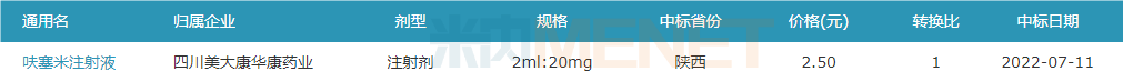 呋塞米注射液(四川美大康华康药业)最新中标价