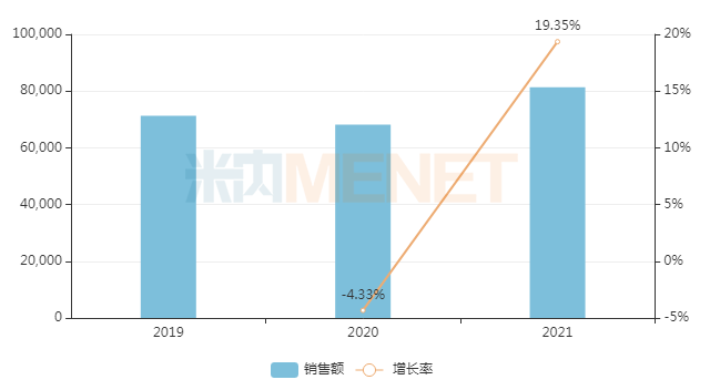 呋塞米为强效利尿剂,可用于水肿性疾病、高血压、急性心力衰竭等。米内网数据显示,2021年中国公立医疗机构终端呋塞米销售额接近6亿元;随着网售处方药持续升温,该品种在中国网上药店终端的销售额增速持续走高,2021年同比增长达94.84%。