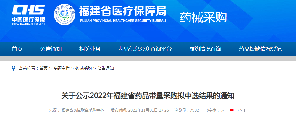 11月1日,福建省医保局发布通知,公示2022年福建省药品带量采购(第三批)拟中选结果,共计43个品种,包含3个生物制剂。米内网数据显示,上述43个品种2021年在福建省公立医院终端销售规模合计超过4亿元,其中,亮丙瑞林注射剂、钆喷酸葡胺注射剂、昂丹司琼口服常释剂等品种销售额均超过1千万元。