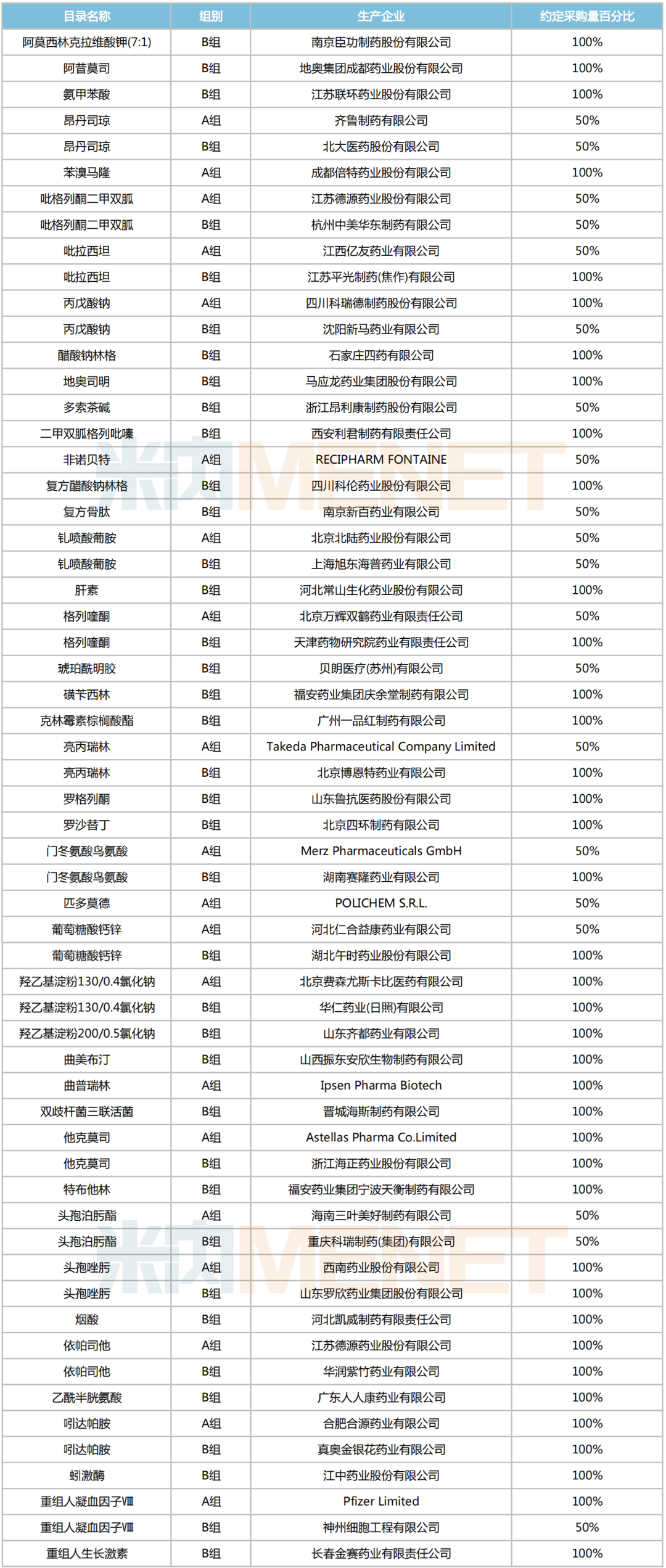 此次集采分A、B两组进行。若A组流标,B组100%采购量中选,则A组的50%分配给B组;若B组50%采购量中选,则A组的25%分配给B组。此外,对于B组中选价格高于A组时,将进行价格纠偏,如不愿意该组将做流标处理。