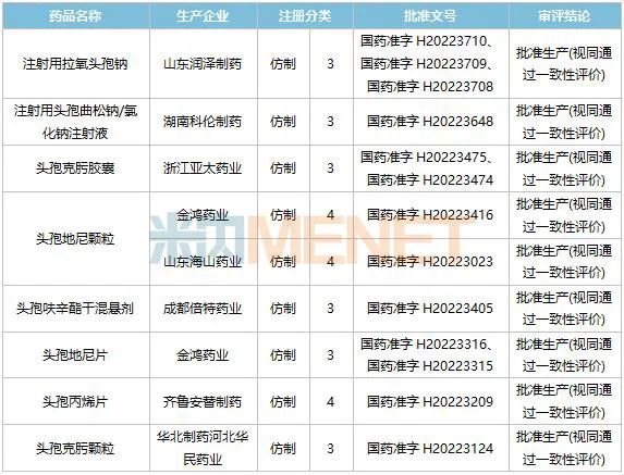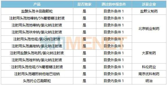 表3:已通过2022年医保目录调整形式审查的头孢类产品情况
