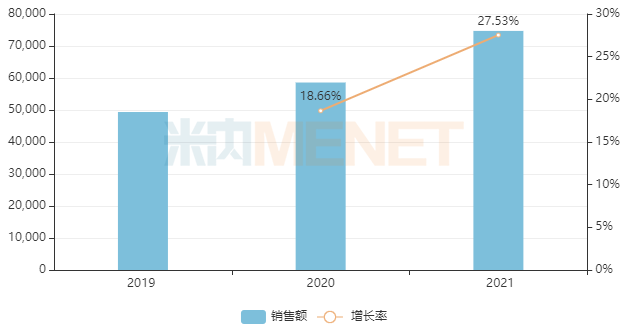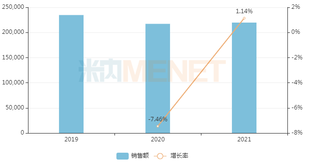 铁皮枫斗颗粒为浙江天皇药业的独家品种,具有益气养阴、养胃生津的功效,适用于气阴两虚所致的干咳,口燥咽干等。米内网数据显示,该产品近年来在中国零售药店终端的销售额增速均达两位数,2021年销售额突破7亿元。
