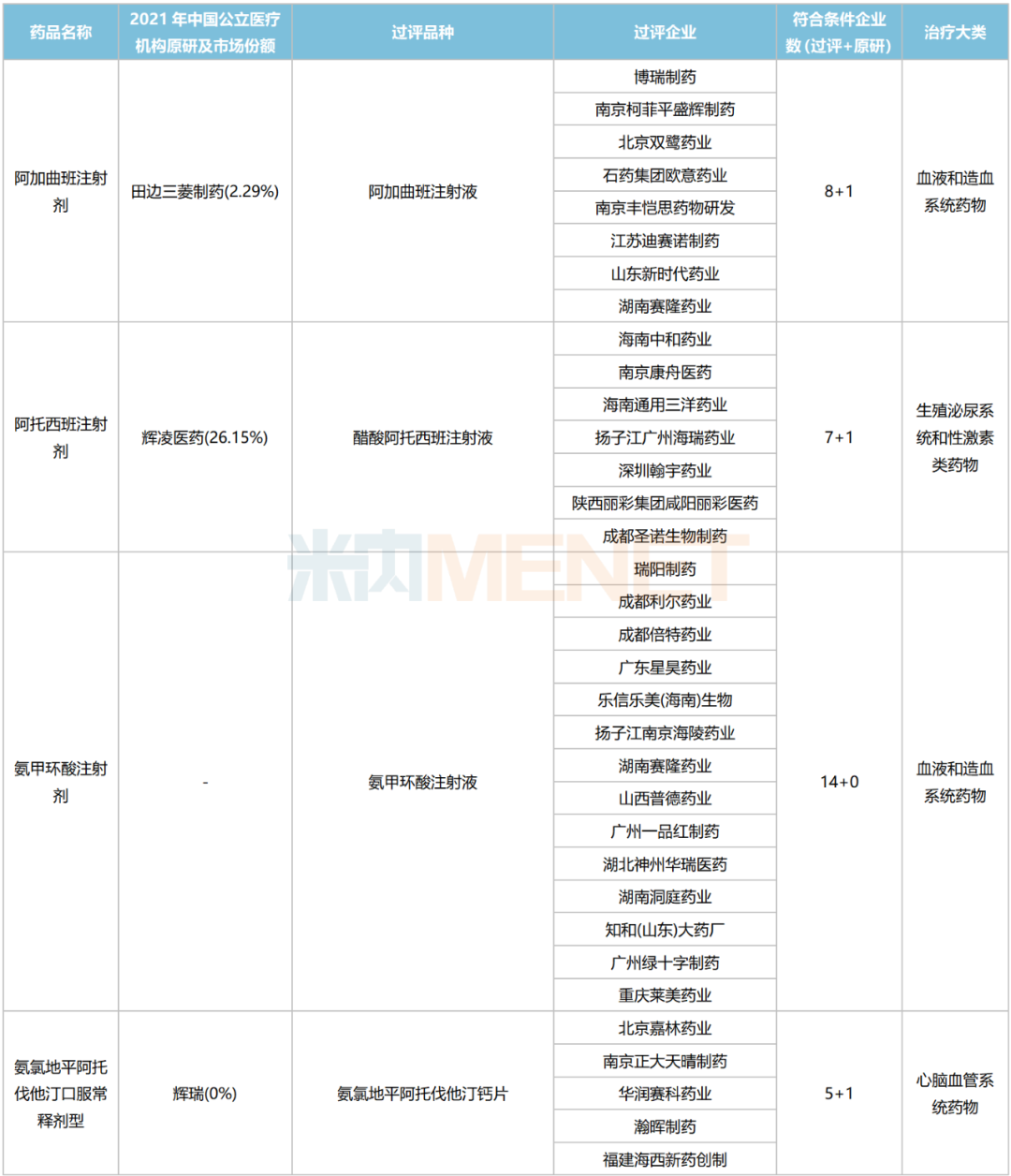 注:一切信息以官方为准!符合条件企业数以集团计(含上市许可持有人),人工整理统计,如有疏漏,欢迎指正来源:米内网综合数据库