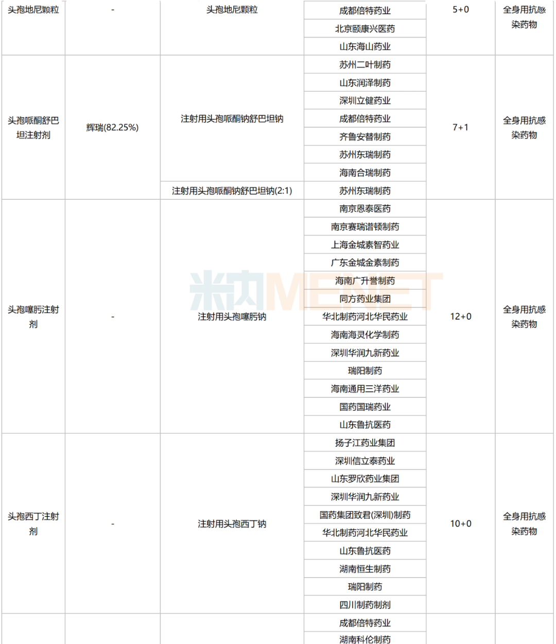 跨国企业中,辉瑞、赛诺菲、默沙东、灵北、阿斯利康、卫材等企业均有品种在列,其中辉瑞首当其冲,4个品种拟纳入,其中在头孢哌酮舒巴坦注射剂、伏立康唑注射剂中的市场份额较高。