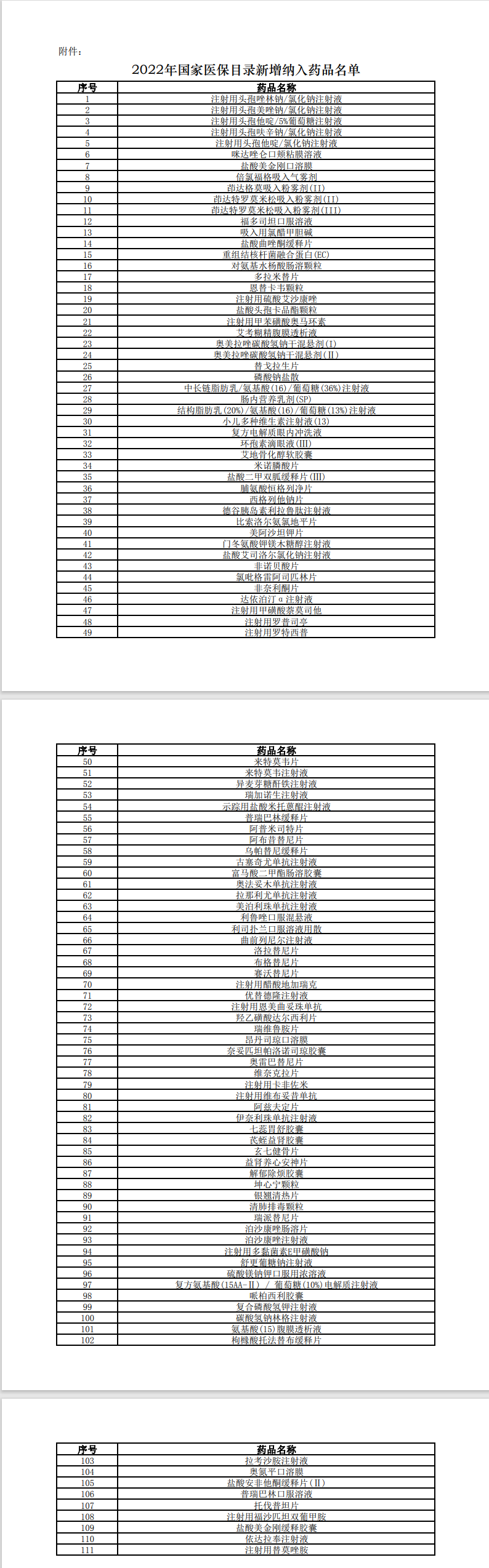 2月8日,上海阳光医药采购网发布公告,根据国家医保局、人力资源社会保障部《关于印发<国家基本医疗保险、工伤保险和生育保险药品目录(2022年)>的通知》(以下简称“《医保通知》”)(医保发〔2023〕5号)的要求,现开展2022年国家医保目录新增药品挂网工作。
