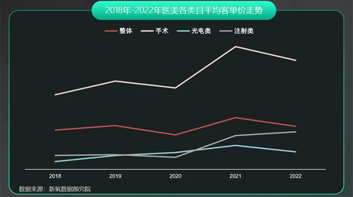 首先,光电医美项目价格亲民。《报告》显示,2022年光电类医美项目平均客单价最低,甚至远低于整体医美项目平均客单价,属于医美市场的“亲民项目”。此外,从2018年-2022年整体趋势来看,光电医美品类呈下降趋势,行业普惠性凸显。
