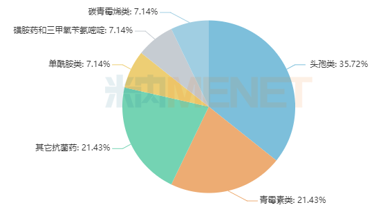 14个抗菌药治疗小类分布
