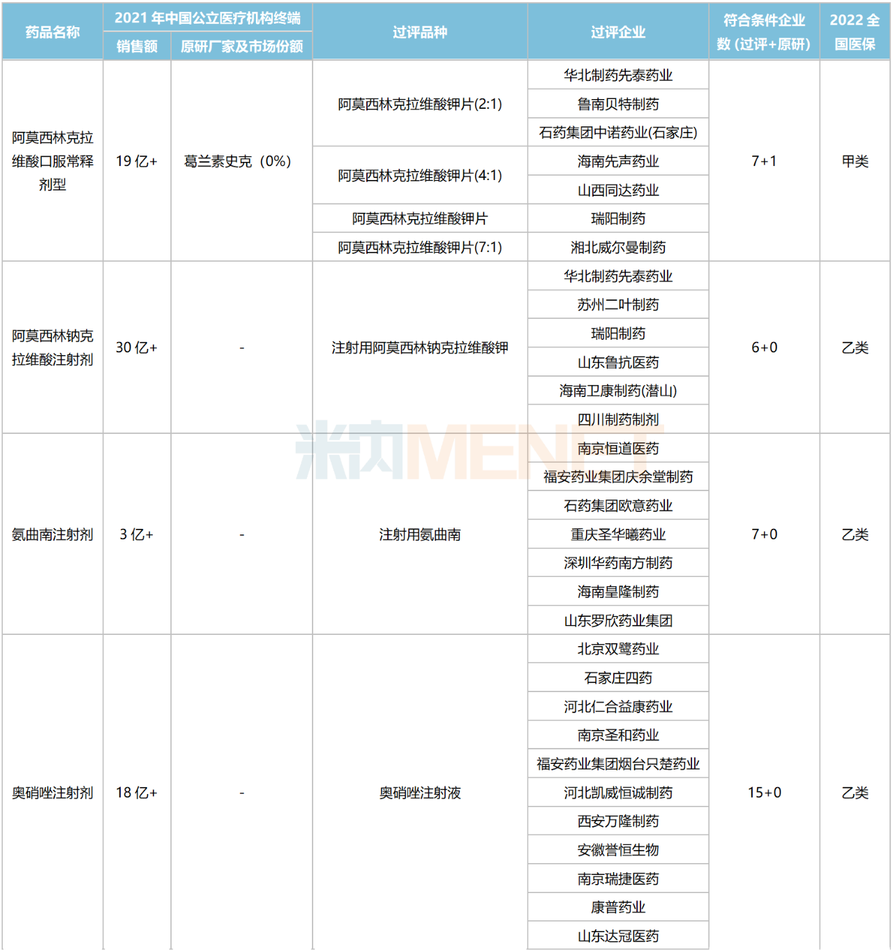 目前纳入国采且已执行的青霉素类/β-内酰胺类抗菌药数量不多,受到集采降价的影响还不明显,但在第八批集采中,阿莫西林克拉维酸口服常释剂型(19亿+)、阿莫西林钠克拉维酸注射剂(30亿+)、哌拉西林他唑巴坦注射剂(83亿+)三个大品种拟被纳入,青霉素类/β-内酰胺类抗菌药市场即将迎来大洗牌。
