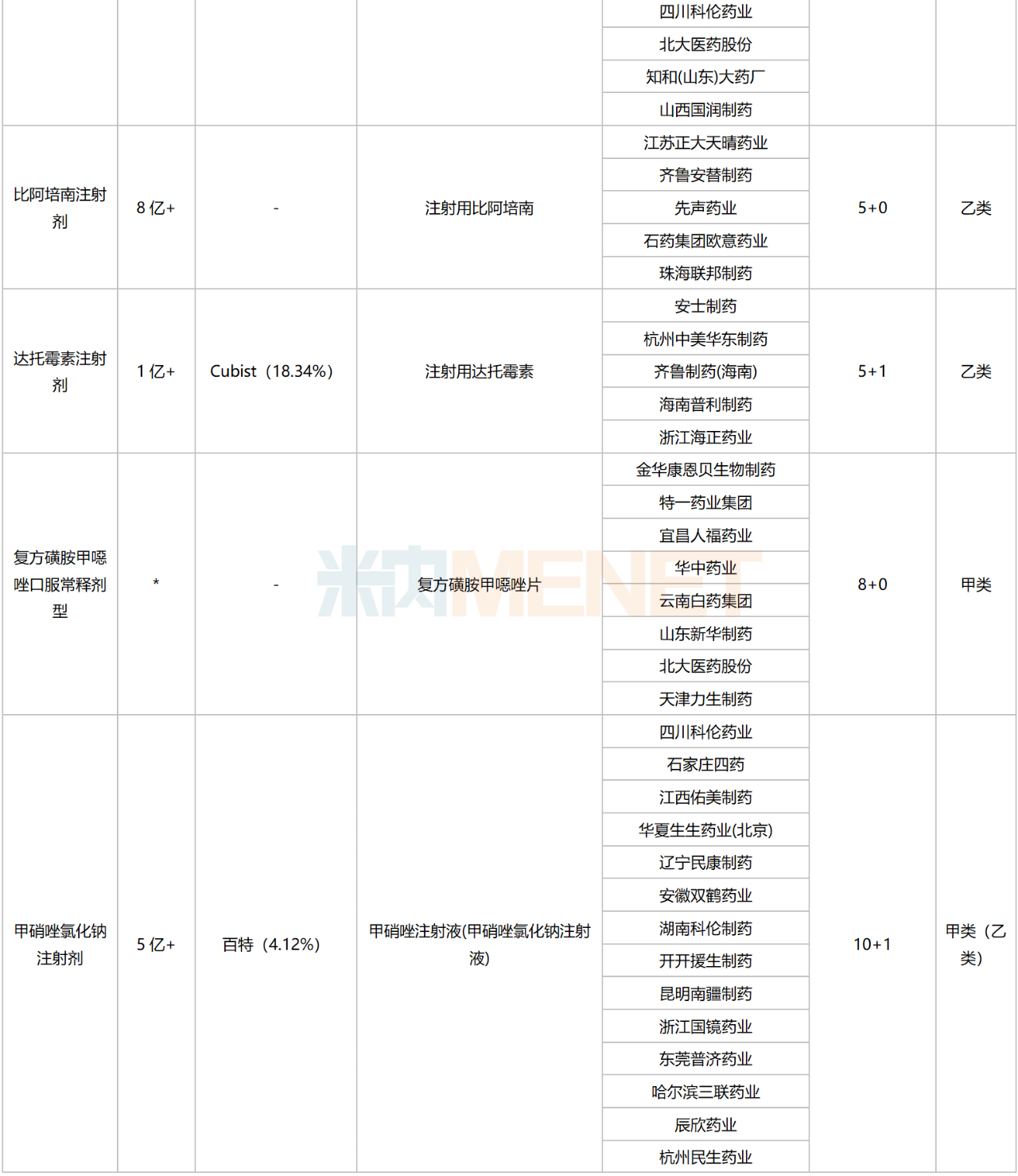 拟纳入第八批集采的抗菌药