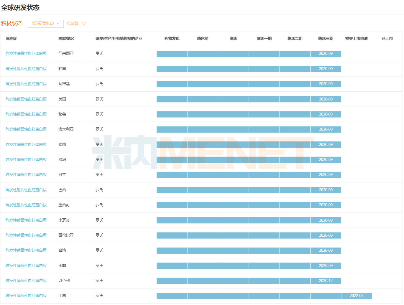 来源:米内网全球药物研发数据库