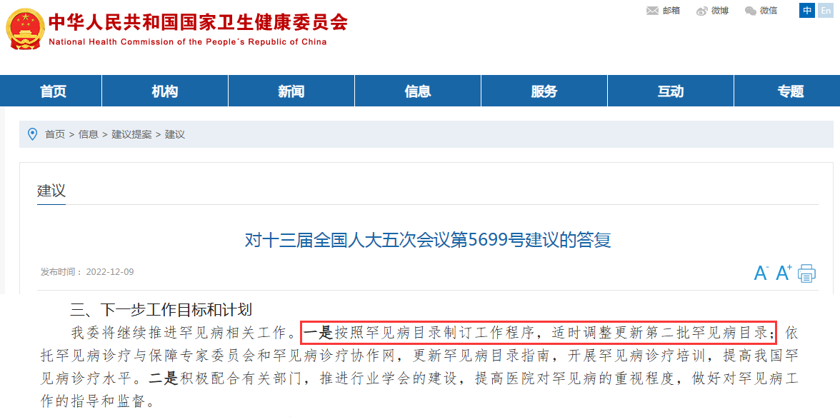 日前,国家卫健委发布一份针对《关于加大对罕见病诊治投入力度的建议》的答复。其中提及,国家卫健委将继续推进罕见病目录制订工作程序,适时调整更新第二批罕见病目录。此外,中华医学会拟成立首个国家级罕见病权威医学组织,即中华医学会罕见病分会。