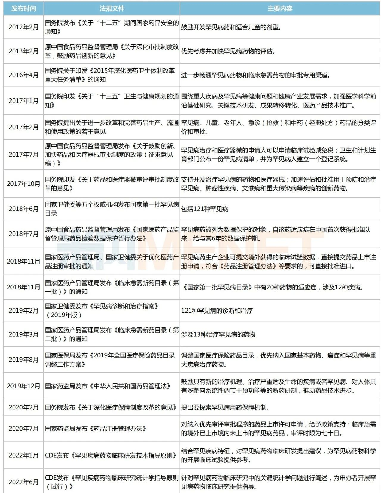 近十年国家发布的部分鼓励罕见病药研发和生产的相关政策