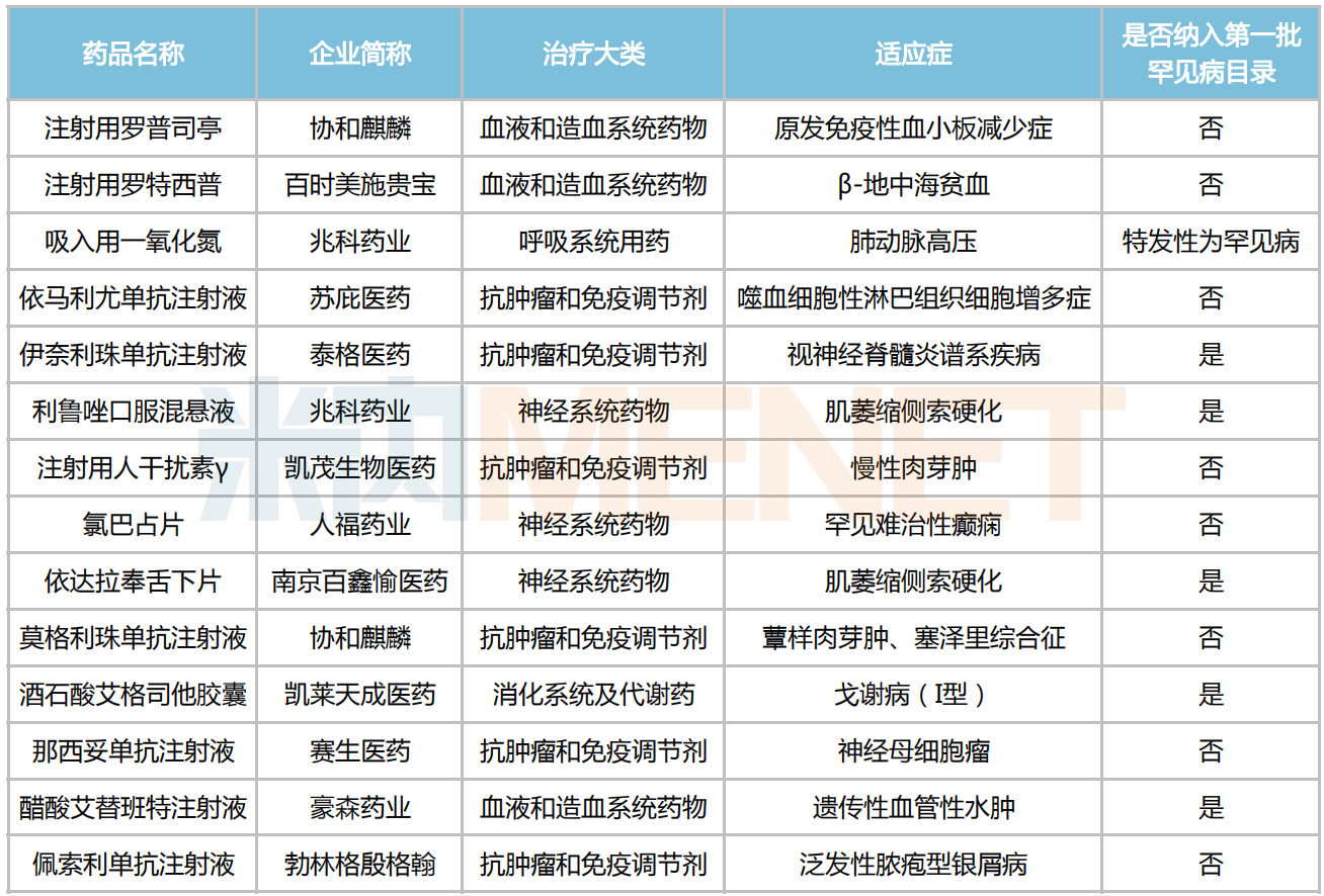 新增进入2022医保目录的罕见病药