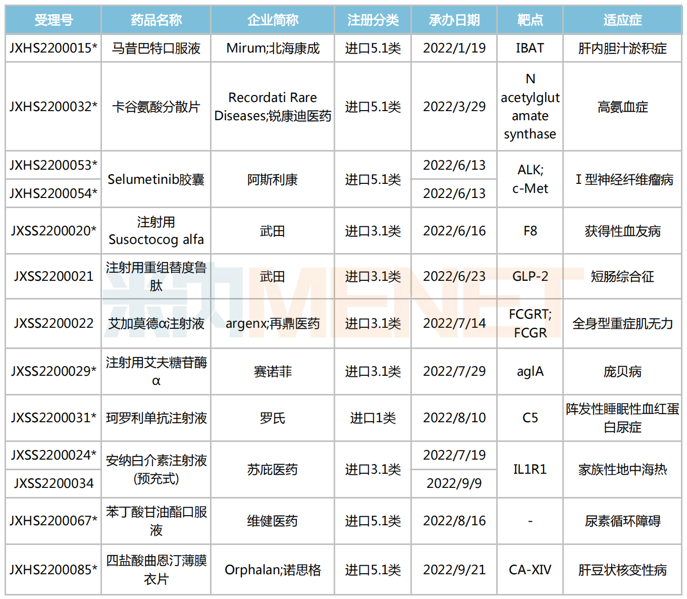2022年中国获批上市的罕见病药