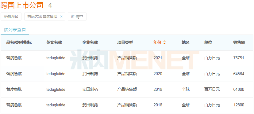 注射用重组替度鲁肽全球销售情况