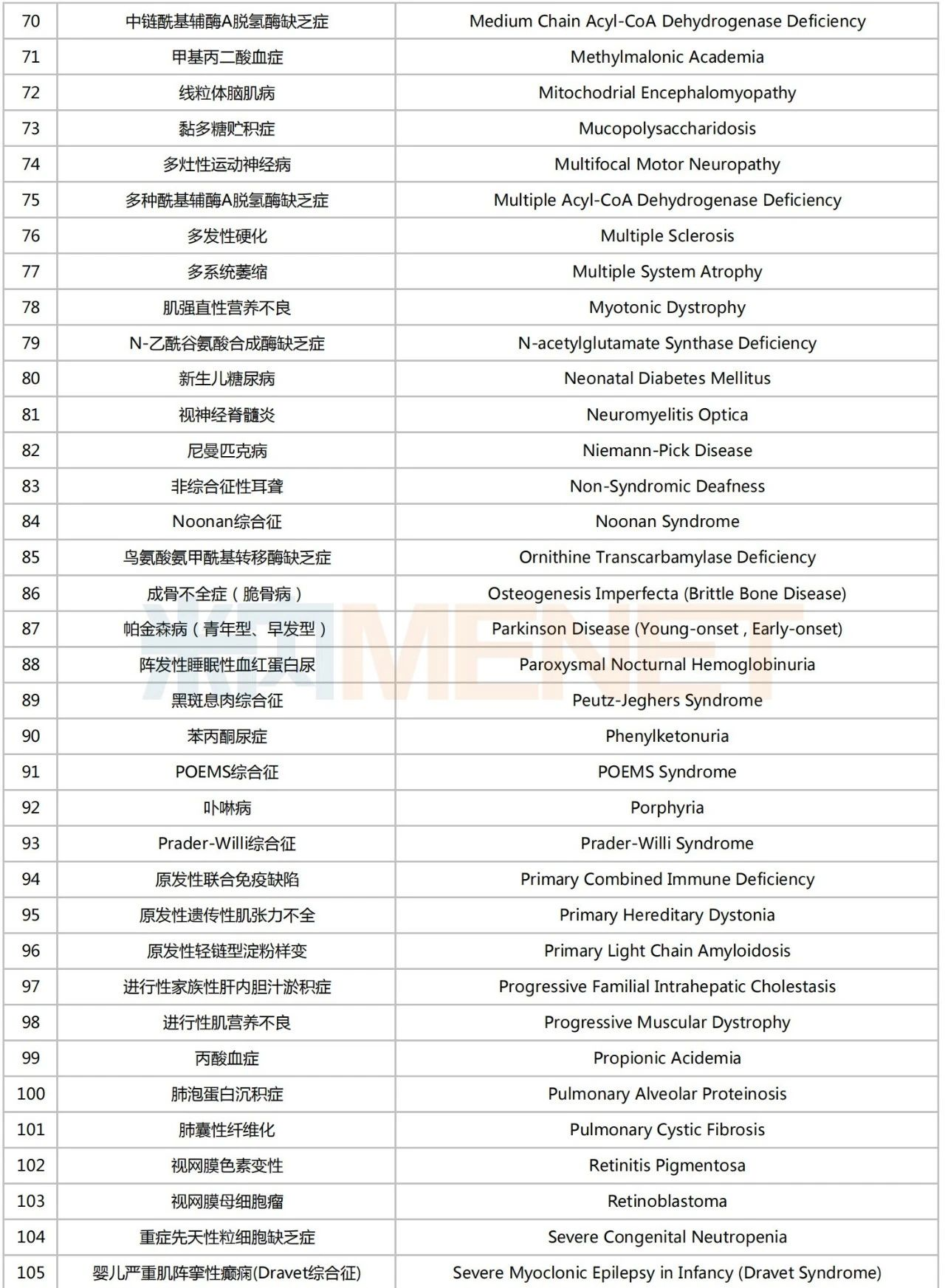第一批罕见病目录