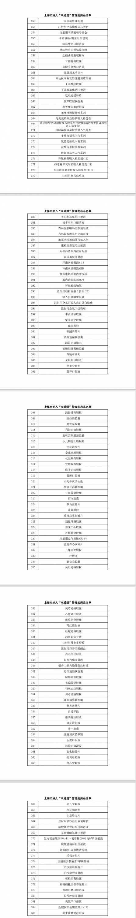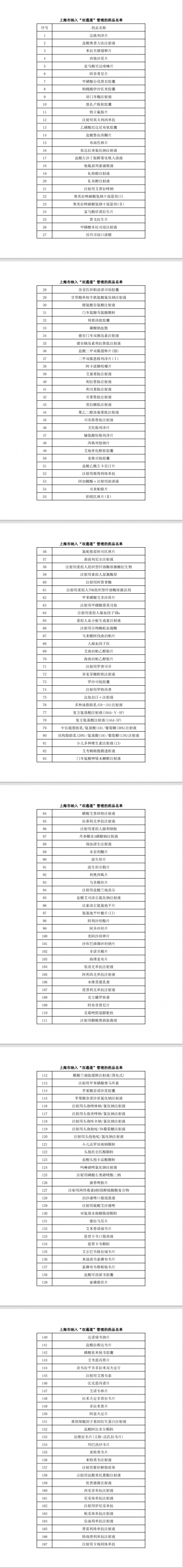 (以下为上海本次公布的“双通道”管理药品名单)
