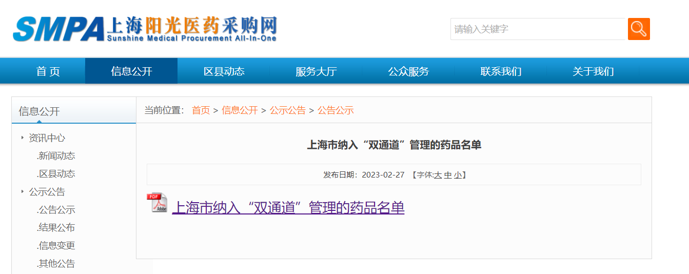 3月1日起,新版国家医保目录将正式落地,各地”双通道“管理药品最新名单陆续出台。就在今天,上海最新公布了383个纳入“双通道”管理的药品名单,以实际行动全力做好参保患者用药保障。