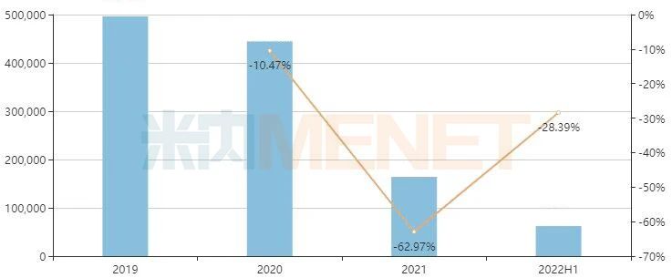 缬沙坦是临床常用的降压药,集采前市场持续扩容,在中国公立医疗机构终端销售峰值为2019年的接近50亿元。2020年该品种被纳入第三批集采并于当年11月执行,市场迎来连续下挫,2020年首次下滑10.47%,2021年、2022上半年分别下滑62.97%、28.39%。