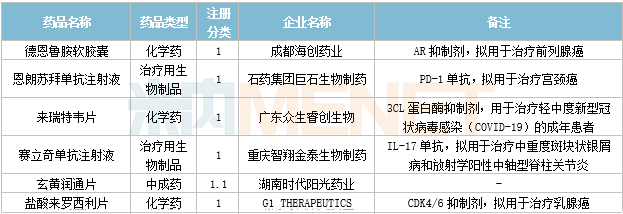 2023年3月有3个创新药获批上市:上海盛迪医药的阿得贝利单抗注射液、上海海和药物研究开发的谷美替尼片以及广东众生睿创生物的来瑞特韦片(附条件批准)。礼来的巴瑞替尼以及拜耳的达罗他胺片获批新适应症。