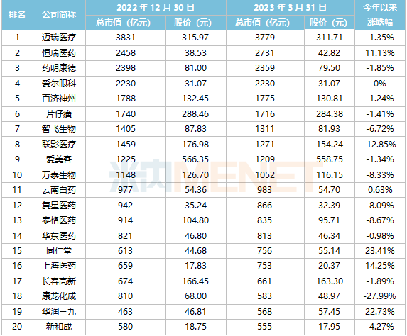 医药股“一哥”失守3800亿市值,同仁堂、华润三九挺进TOP20