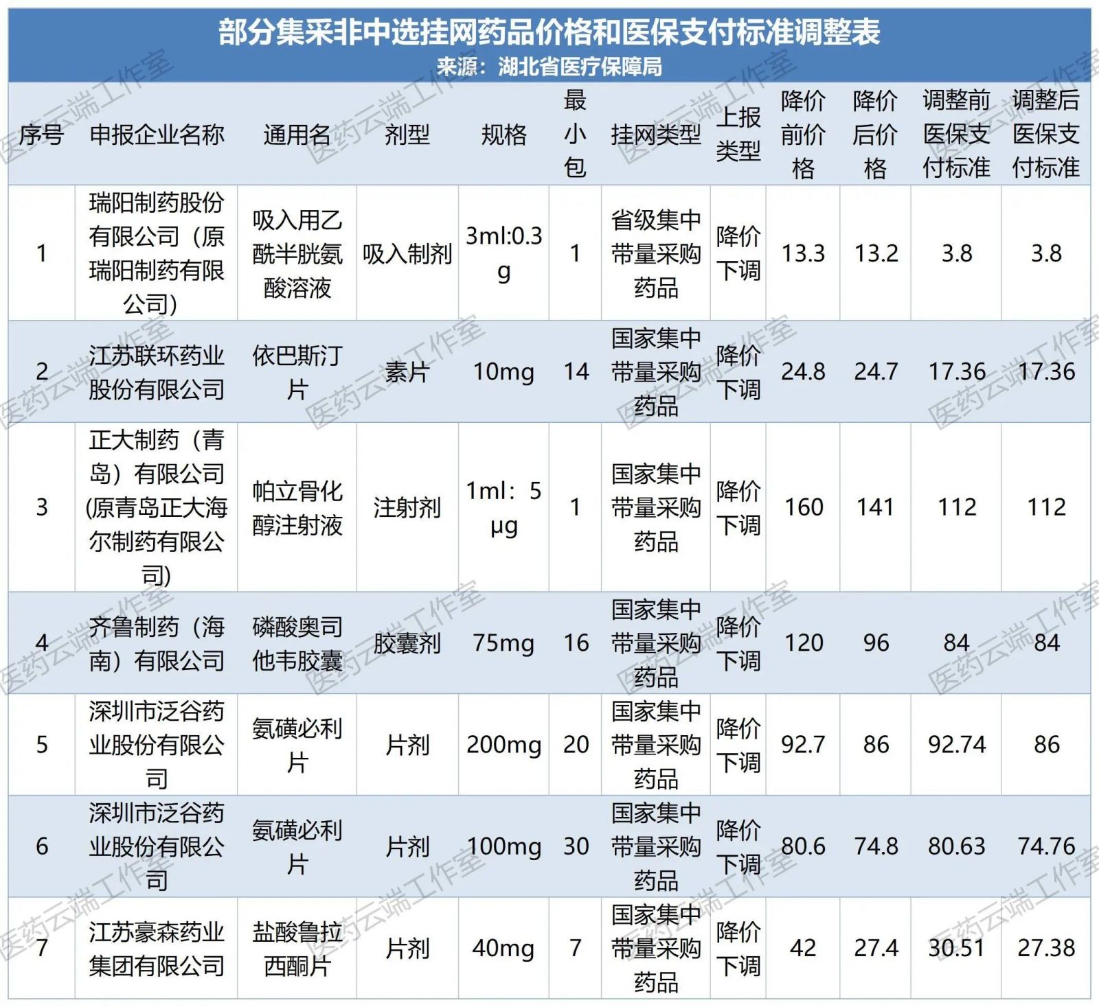 4月11日,湖北省医药价格和招标采购管理服务网发出《省医疗保障局关于调整部分挂网药品价格信息的通知》,通知显示,湖北省对近期主动申请下调挂网价的部分挂网药品进行了审核及公示,自4月14日起将在全省所有公立医疗机构执行新的价格。