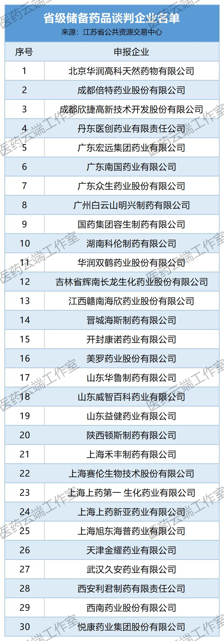 参与谈判的企业包括北京华润高科天然药物有限公司、成都倍特、湖南科伦、华润双鹤等30家企业,如下表所示: