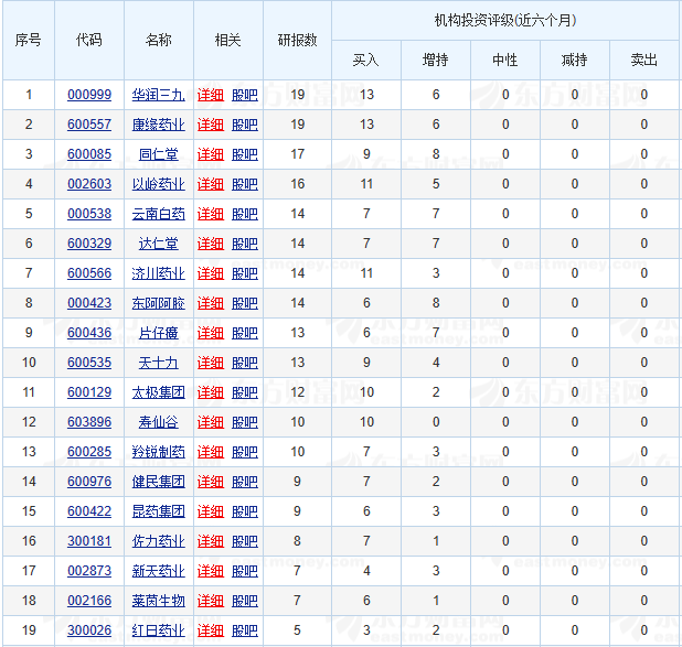 中药股业绩飘红的同时,机构研报也是密集发布。近6个月,机构研报涉及中药股多达39只。康缘药业、华润三九、太极集团、片仔癀、羚锐制药等13只研报数在10篇及以上,昆药集团、佐力药业、新天药业、莱茵生物、红日药业6只研报数在5篇及以上。