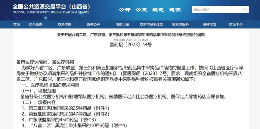 国家集采“常态化”之后,带量采购续约将由省或者省际联盟来进行。事实上,随着国家组织的第二、三、四、五批带量采购部分产品陆续到期,已经陆续有省份已经开始续约。近日,全国公共资源交易平台(山西省),发布一则《关于开展八省二区、广东联盟、第三批和第五批国家组织药品集中采购品种续约报量的通知》,共计127个品种续约报量。
