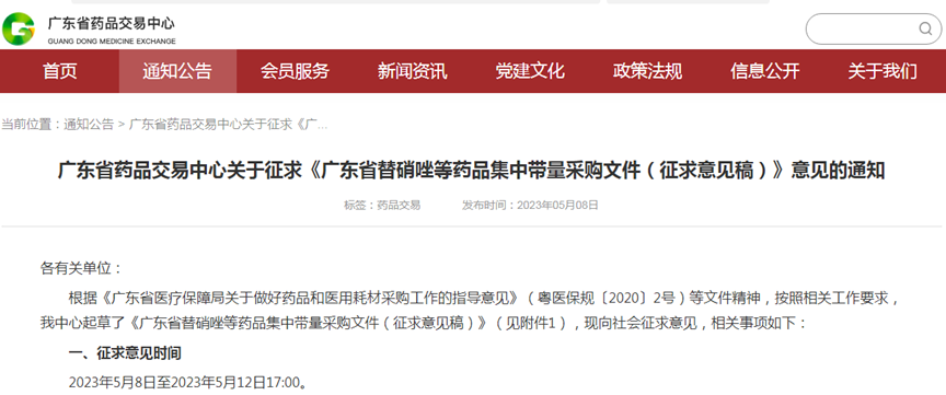 5月8日,广东省药品交易中心发布《广东省替硝唑等药品集中带量采购文件(征求意见稿)》,向社会征求意见。广东省本次药品集中带量采购的品种范围是国家第二、三、四、五批集采协议期满的43个药品剂型,邀请符合要求的企业前来申报。