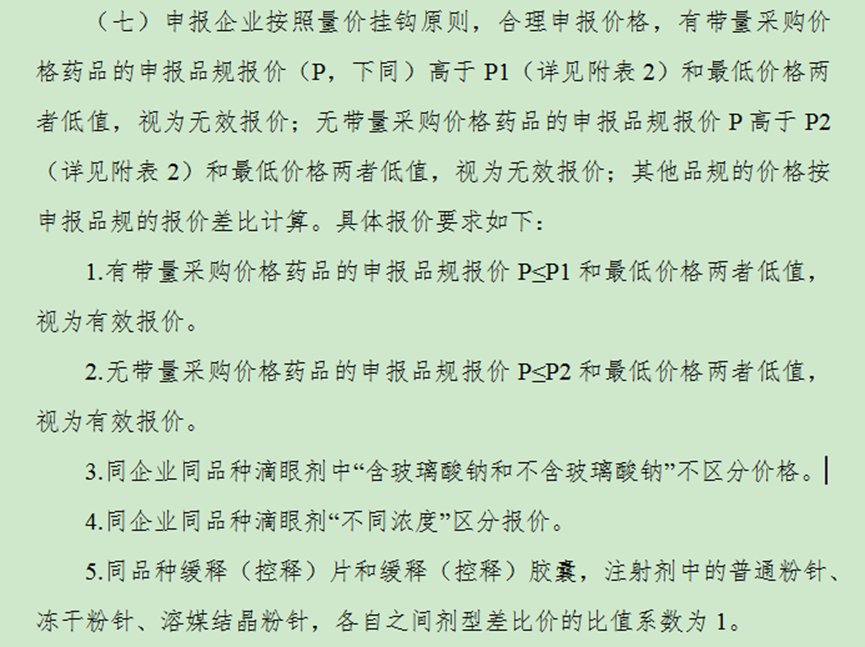 广东省此次集采未采取“梯级报价”模式,申报企业按照量价挂钩原则,合理申报价格P,有带量采购价格药品的申报品规报价P不高于P1(待公布)和最低价格两者低值;无带量采购价格药品的申报品规报价P不高于P2(待公布)和最低价格两者低值;其他品规的价格按申报品规的报价差比计算。