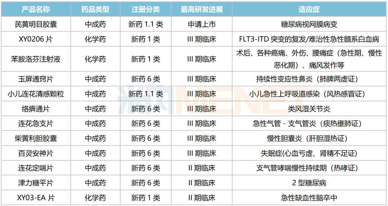 济川药业部分在研新药