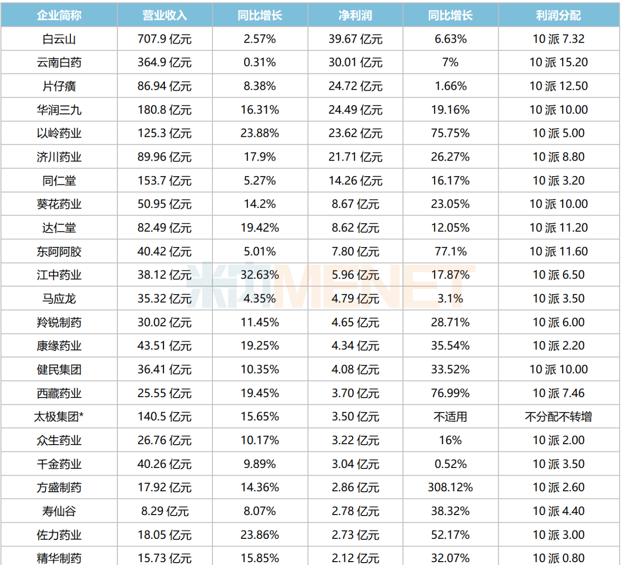 2022年营收、净利润双涨的中药企业