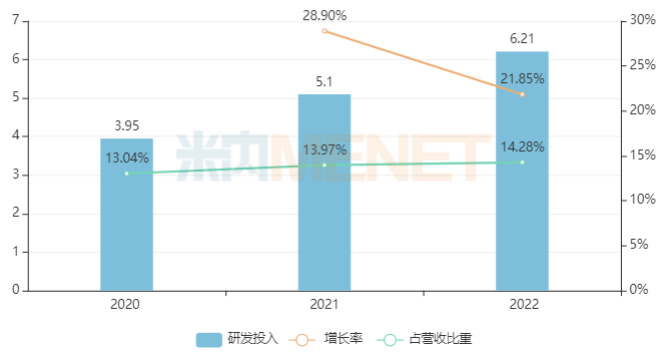 作为国内中药创新龙头之一,康缘药业整体科研及技术开发能力较强,目前拥有一支近500名科研人员组成的研究队伍,2022年研发投入6.21亿元,同比增长21.85%,占营收比重为14.28%。