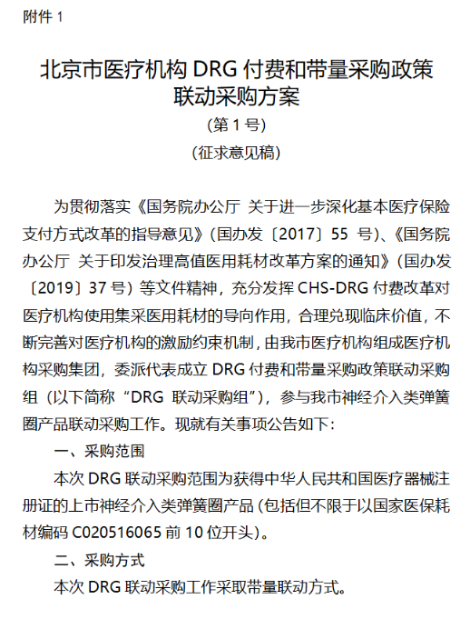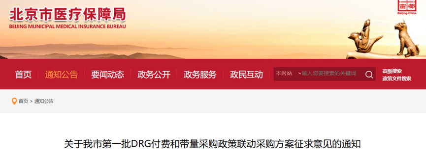 5月10日,北京市医保局发布《关于我市第一批DRG付费和带量采购政策联动采购方案征求意见的通知》(以下简称“《通知》”)。