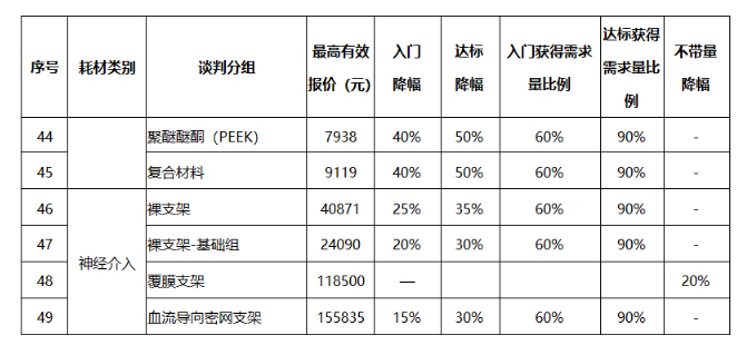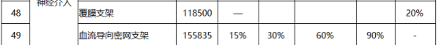 从本次《通知》所公式的带量采购目录来看,大部分都是价值过万的高值耗材,其中,神经介入的覆膜支架最高有效报价高达118,500元,不带量降幅要求为20%,意味着患者可最低享受到到23700元的降价优惠;血流导向密网支架更是高达155,835元,入门降幅为15%,达标降幅为30%。即使按照入门降幅计算,患者也可以减轻23375.25元的耗材负担,按照30%的达标降幅计算患者则可以减轻46750.5元的耗材负担。