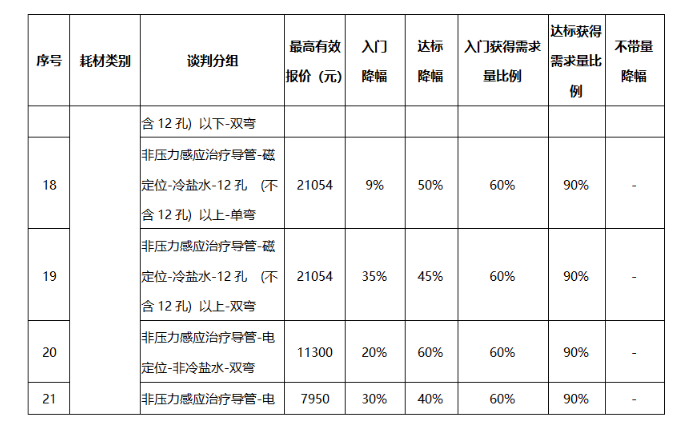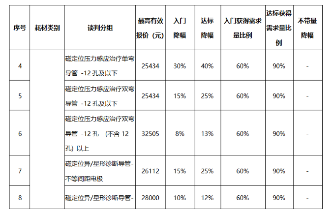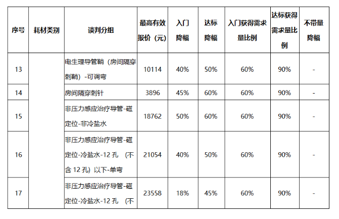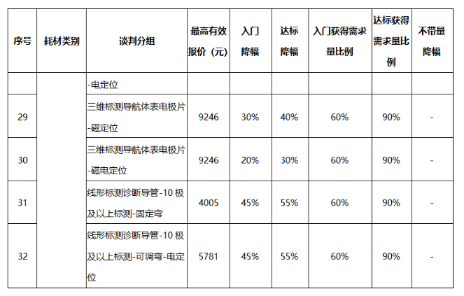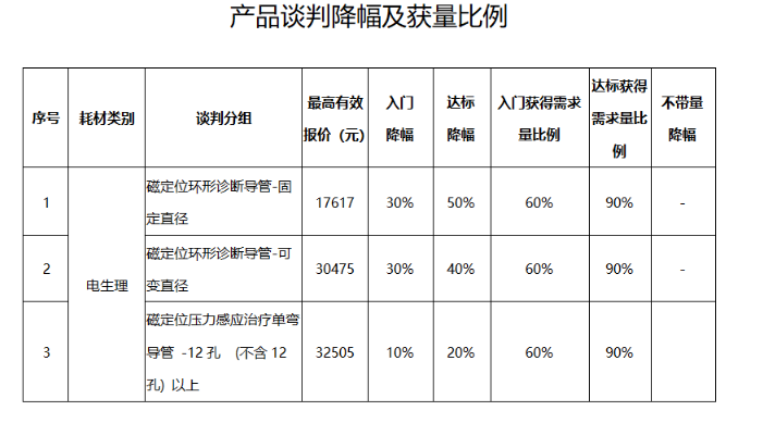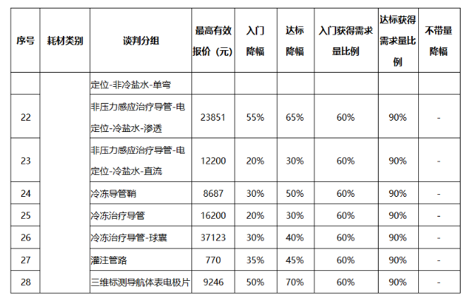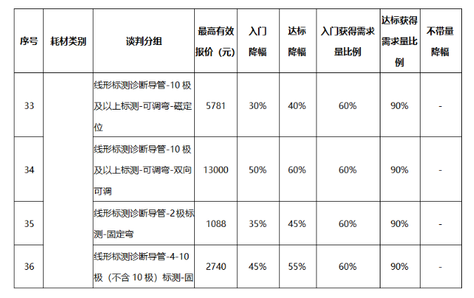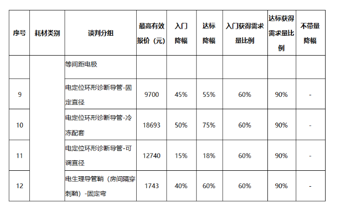 公示的降幅中,电定位环形诊断导管-冷冻配套降幅最高,达标降幅高达75%。达标降幅高于50%的也不在少数。