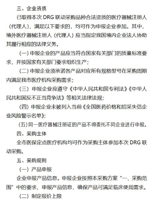 两款方案中,北京市全市医保定点医疗机构均可作为采购主体参加本次DRG联动采购。已取得本次DRG联动采购品种合法资质的医疗器械注册人,满足一定要求的,均可作为申报企业。