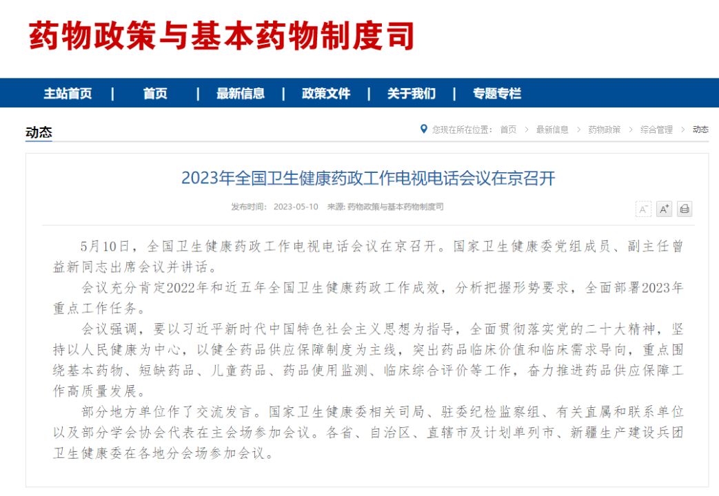 “基本药物”被明确列为今年工作重点,是否意味着2023年基本药物目录调整工作即将开始?