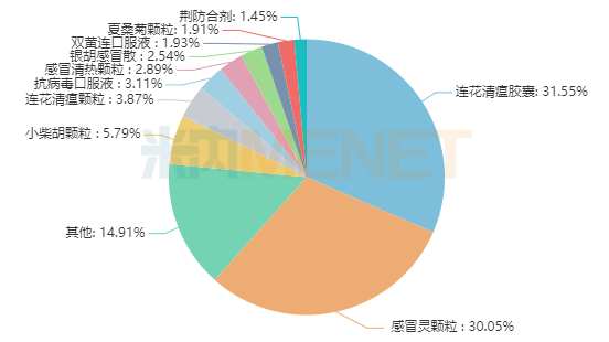 7个为独家品种(含独家剂型),包括连花清瘟胶囊(以岭药业)、连花清瘟颗粒(以岭药业)、银胡感冒散(源安堂)、四季抗病毒合剂(海天制药)、金花清感颗粒(聚协昌)、疏风解毒胶囊(济人药业)及抗病毒颗粒(光大制药)。