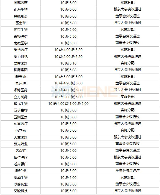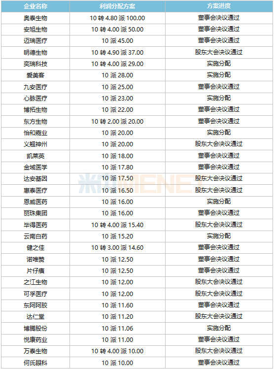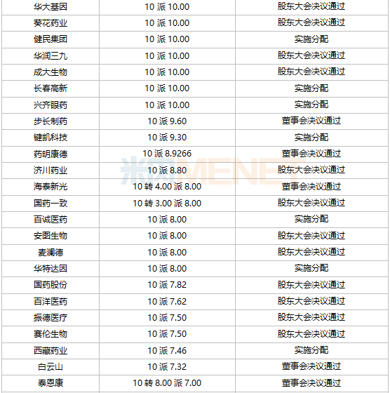 从细分行业来看,医疗器械企业最多,其次是中药企业,恩威医药、云南白药、片仔癀、东阿阿胶、达仁堂、葵花药业、健民集团、华润三九均在每10股派10元及以上。