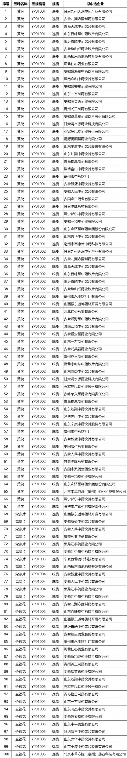 附:中药饮片联合采购拟中选企业名单