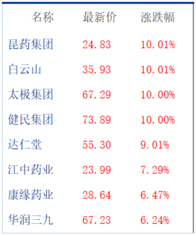 资本市场对此反应积极,A股中药板块掀起了涨停潮。5月26日(本周最后一个交易日),昆药集团、白云山、太极集团和健民集团先后涨停,康美中国中药材价格总指数报2010.47点,较去年同期上涨15.56%。