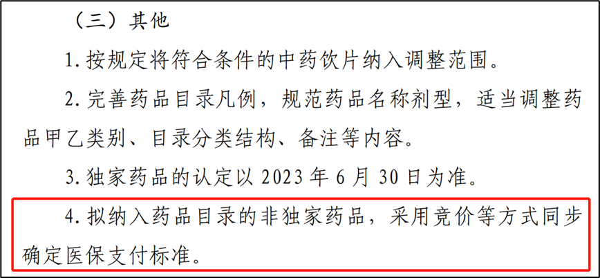 今年,征求意见稿中提出,拟纳入药品目录的非独家药品,采用竞价等方式同步确定医保支付标准。《谈判药品续约规则》与《非独家药品竞价规则》将另行公开征求意见。