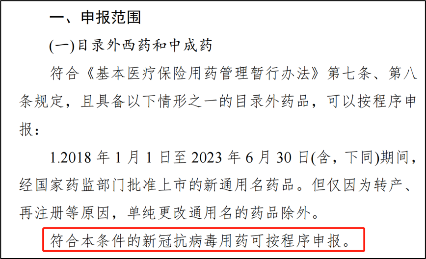 符合本条件的新冠抗病毒治疗用药,可按程序申报。