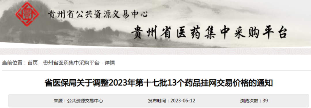 根据上述通知内容,经企业申请,贵州省公共资源交易中心已确认13款药品的调价申请,并于6月14日起正式执行新的挂网价格。