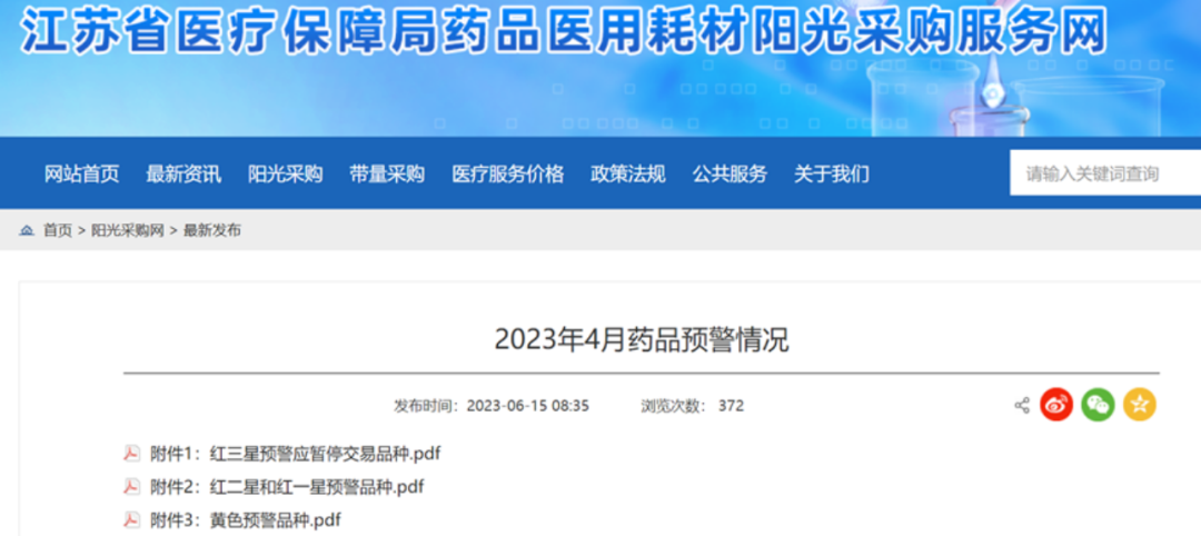 日前,江苏省药品医用耗材阳光采购服务网发布了2023年4月药品预警,多款品种因为价格差异超过10倍被评定为“红三星”,并且直接被暂停挂网。