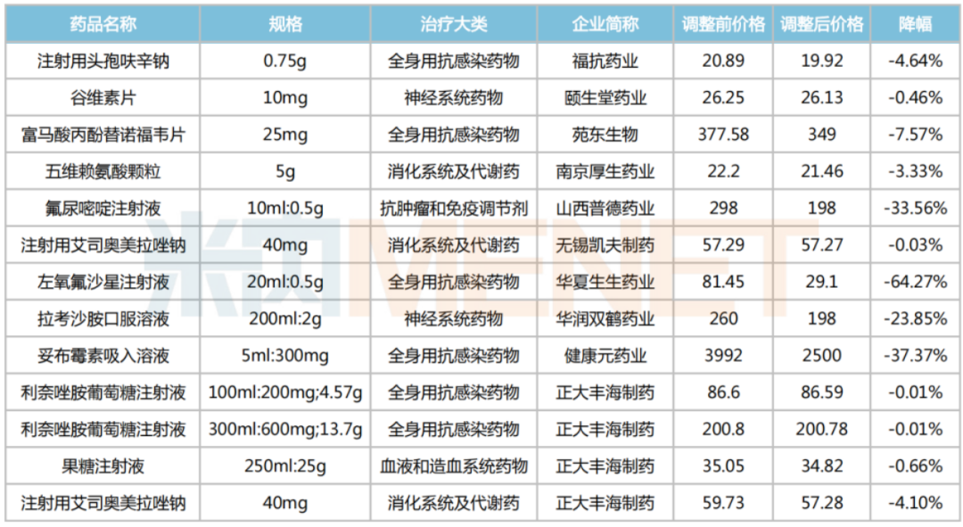 除四川外,目前包括江苏、天津、山东、广西、浙江、甘肃、湖北等在内的多个省份已发布相关价格调整通知,挂网价格均与四川价格一致。